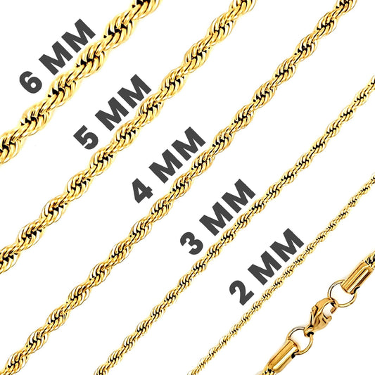 Stainless Steel 18K Gold Plated Rope Chain Necklace