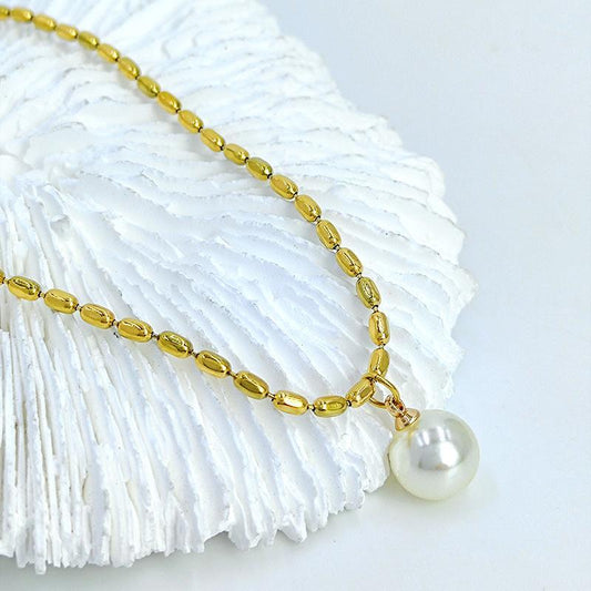 New titanium steel 18K gold millet grain pearl collarbone necklace