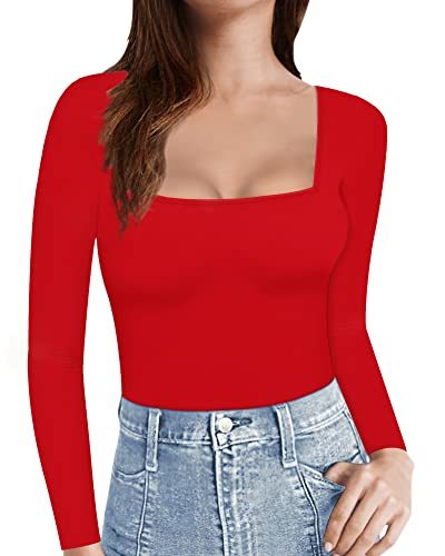 MANGOPOP Womens Short Sleeve/Long Sleeve Square Neck T Shirts Tops Tees